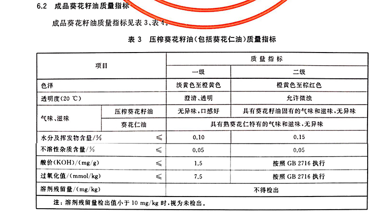 葵花籽原油的質(zhì)量指標(biāo)僅適用于葵花籽原油的貿(mào)易。