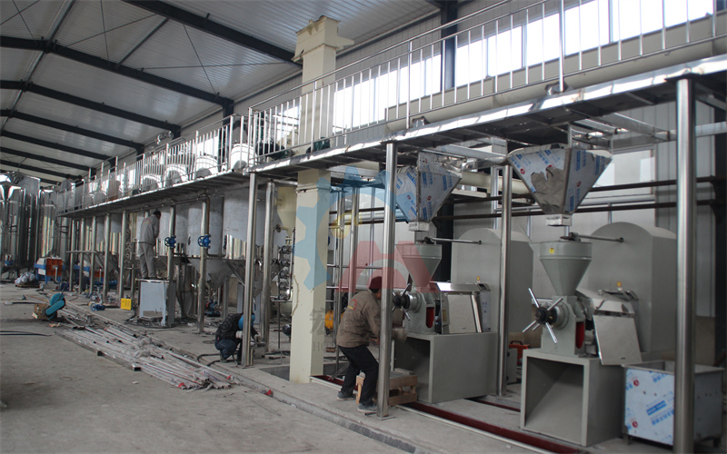 隨著消費水平的提高,人們對于食物也不僅僅只考慮味道,對于健康更是尤為注重。近些年來隨著健康飲食逐漸興起,一些小眾油脂逐漸出現(xiàn)在大眾視野,牡丹籽油就是其中一種。牡丹籽不僅產(chǎn)量高、而且抗性強、適應(yīng)性廣,發(fā)展?jié)摿Υ螅悄壳拔覈纱竺娣e推廣的高亞麻酸木本油料作物。 牡丹籽油加工工藝流程和常見油脂大致相同,常見油脂有壓榨和浸出兩種生產(chǎn)工藝,但作為小品種食用油之一,牡丹籽原料生長范圍、播種面積不如常見的花生、菜籽等原料播種面積廣、產(chǎn)量大,因此不適于浸出工藝生產(chǎn)。宏德機械建議牡丹籽油的加工還是選擇壓榨工藝來生產(chǎn),主要原因有兩點: 一是浸出設(shè)備投資成本高,機械化程度高,需要連續(xù)化生產(chǎn),適合大宗油料生產(chǎn),效率高,產(chǎn)量大。而壓榨生產(chǎn)線設(shè)備可以根據(jù)客戶的產(chǎn)量配置設(shè)備的數(shù)量,有利于成本的節(jié)約。 二是壓榨生產(chǎn)線是采用物理壓榨工藝,生產(chǎn)出的牡丹籽油保留了原料的營養(yǎng)和風(fēng)味,消費者的認(rèn)可程度更高。 牡丹籽油壓榨生產(chǎn)線提取油脂的主要設(shè)備有榨油機和精煉設(shè)備,壓榨工藝分為冷榨和熱榨兩種,具體選擇哪種工藝還是要由客戶來選擇。精煉設(shè)備則是保證成品牡丹籽油能達(dá)到食用油標(biāo)準(zhǔn),保證牡丹籽油品質(zhì)的重要設(shè)備。 下面是宏德客戶牡丹籽油壓榨精煉生產(chǎn)線的安裝現(xiàn)場圖片: 牡丹籽的清理采用振動清理篩和比重去石機,清理后的牡丹籽由絞龍送至下個車間。 清理后的牡丹籽進行脫殼、蒸炒后送入榨油機壓榨出油。 壓榨得到的牡丹籽毛油在精煉設(shè)備中進行脫膠、脫酸、脫色、脫臭處理,再送入脫蠟設(shè)備進行低溫脫蠟,之后經(jīng)過板框過濾機過濾后的牡丹籽油就是一級牡丹籽油。